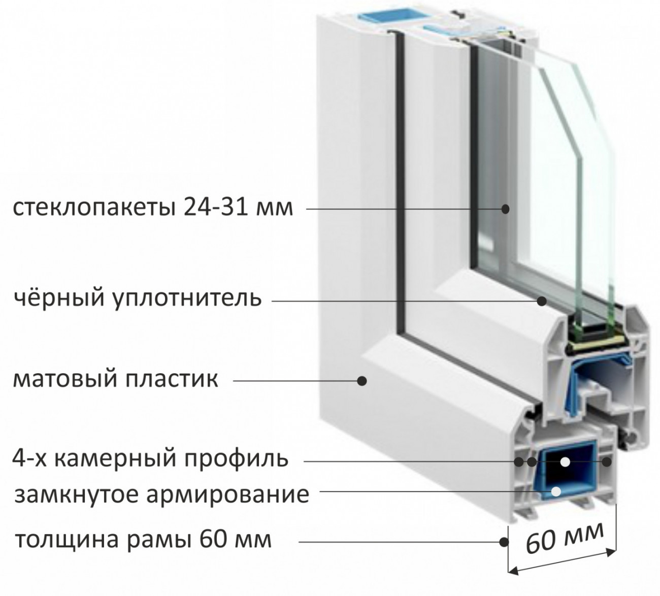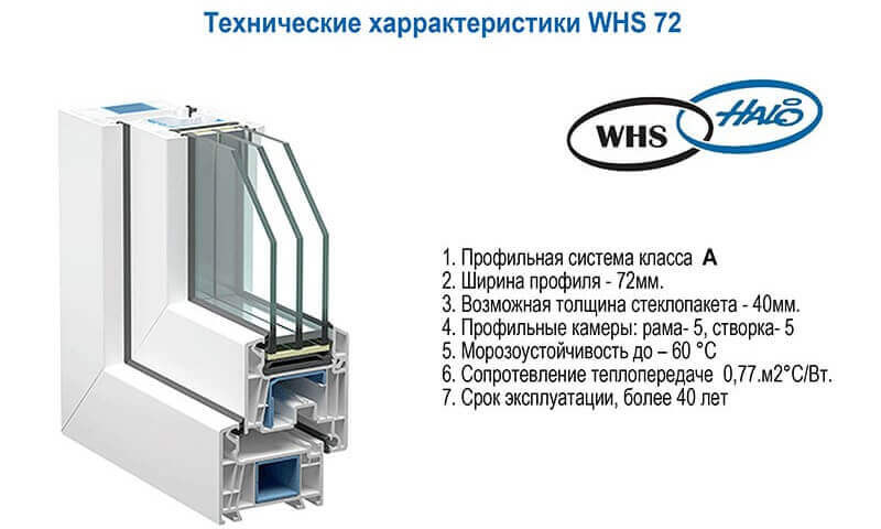 - Доступные решения: окна из профиля WHS 60 с однокамерным стеклопакетом