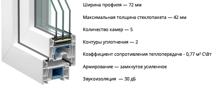 - Высокая теплоизоляция достигается за счет стабильной работы трехкамерной системы оконных профилей